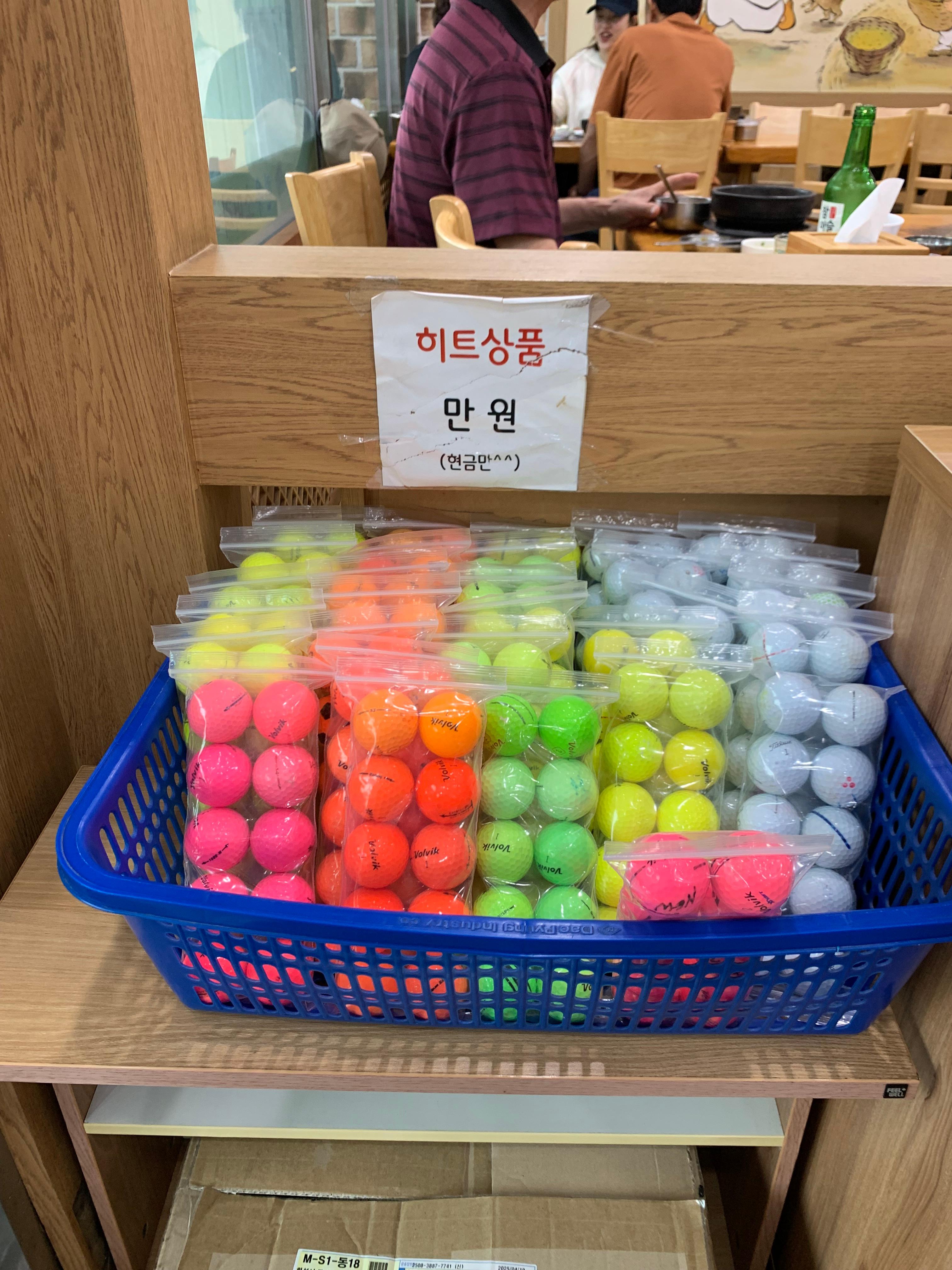 커피옆에 골프공 히트상품을 만원에 판매하고 있어요~ㅎㅎ